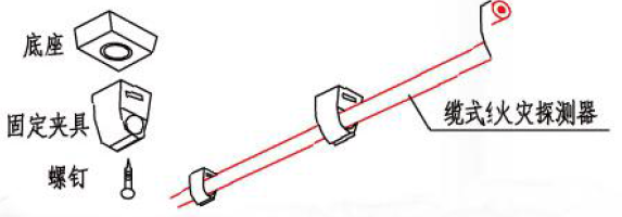線型感溫火災探測器在頂部安裝時,可采用帶底座的卡具、掛鉤等固定。