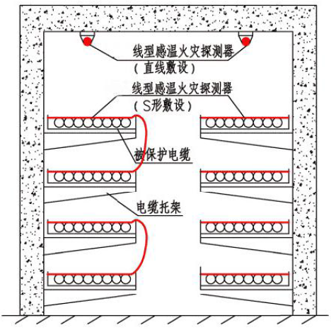 圖5. 線型感溫火災探測器在電纜隧道內敷設示意圖