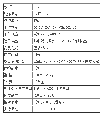 二.Flax53點(diǎn)型紅外火焰探測(cè)器技術(shù)參數(shù);