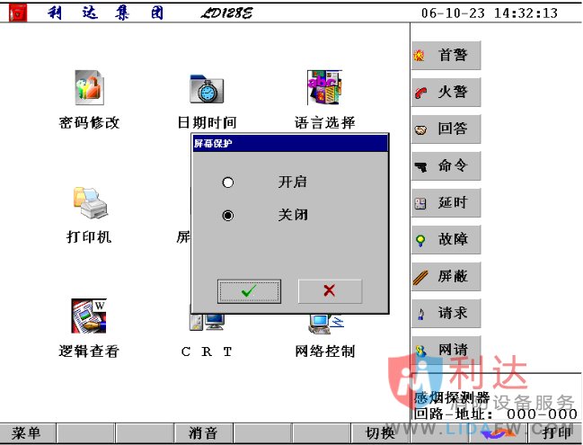 利達(dá)LD128EII消防主機(jī)屏幕保護(hù)設(shè)置