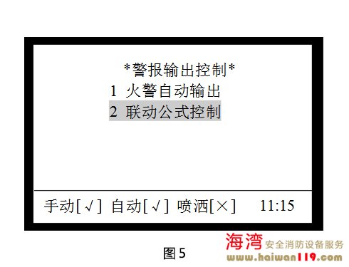 “警報輸出控制”是指對控制器的警報輸出接口進行設置,可以設置為火警自動輸出及聯動公式控制方式。