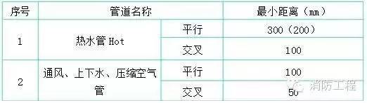4.暗配電線管路與其它管道-小距離,如下表所示: